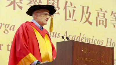 Prof Sargent delivers a speech at UM’s Ceremony for the Conferment of Honorary Degrees and Higher Degrees