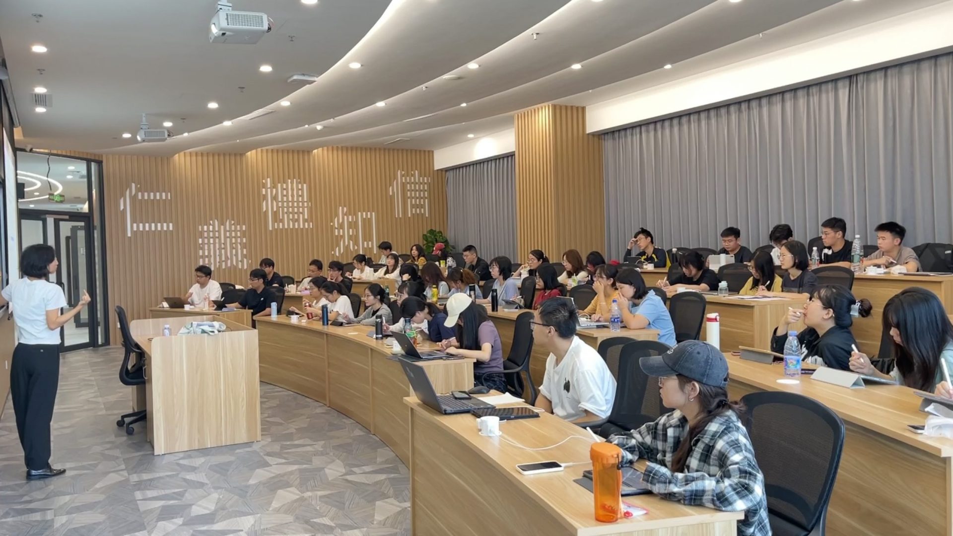 師生對這個「新空間」讚不絕口。微電子研究院副教授、產業合作協調主任諸嫣以「麻雀雖小,五臟俱全」來形容:「這裡功能區塊劃分清晰,集教學、科研、會議展廳等多功能於一體。教學環境舒適便捷,配備了先進的全自動智能控制系統,大大提升授課便利性,也帶給學生更佳的課程體驗。」